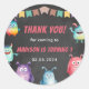 Pegatina redondo clásico de la fiesta de cumpleaños de pequeños monstruos