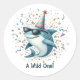 Pegatina Redonda Fiesta de cumpleaños "Wild One", tema del tiburón