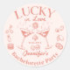 Pegatina Redonda Clásica Fiesta de Despedida de Soltera Cóctel Melocotón Afortunada en el Amor