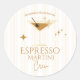 ¡Celebra con estilo con nuestra pegatina redonda clásica Espresso Martini Crew! Perfecta para la despedida de soltera, esta pegatina chic y divertida está diseñada para unir a la novia y su grupo con un amor por el café y los cócteles. Con un vaso de martini de espresso elegante y letras en negrita, esta pegatina es la forma definitiva de mostrar a tu grupo de fiesta de una manera elegante y divertida.