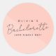 Pegatina Redonda Clásica Rosa Fiesta de Despedida de Soltera Nombre de Novia Personalizado Moderno..