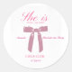 Agrega un toque de encanto femenino a tu despedida de soltera con nuestra Pegatina Redonda Clásica para Despedida de Soltera Coquette Rosa Girly. Con un color rosa juguetón, lazos delicados y el delicioso mensaje "She's Tying the Knot", esta pegatina captura perfectamente la esencia del estilo coquette. Ya sea que decores los recuerdos de la fiesta o agregues un toque a tus decoraciones de despedida de soltera, esta pegatina seguramente deleitará a la futura novia y a sus invitadas. ¡Que la fiesta brille con nuestra Pegatina Redonda Clásica para Despedida de Soltera Coquette Rosa Girly!