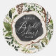 Pegatina Redonda Fiesta de ducha de novias con trozo de madera rúst