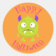 Pegatina Redonda Fiesta de Halloween para niños con Monstruo Verde