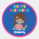 Impresionantes niños piscina fiestas pegatinas de cumpleaños para un niño afroamericano en verano. Cuenta con un brillante y divertido pop de colores y un adorable chica negro nadando en el agua. Personalizar esta bonita decoración para un fiesta especial de la piscina infantil.