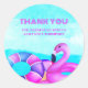 Fiesta de la piscina de cumpleaños rosada Gracias pegatina redonda. Es fácil cambiar el texto.