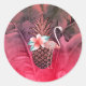 Pegatina Redonda Fiesta de Luau de Piña Brillante Tropical Rosa
