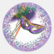 Pegatina Redonda Fiesta de Máscaras con Máscara de Pluma Púrpura