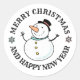 Pegatina Redonda Fiesta de Navidad de Muñeco de Nieve
