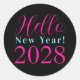 Este es un diseño de celebración de Nochevieja moderno y chic. Está en el rosa intenso y negro de moda con un diseño de tipografía moderna. Tiene el mensaje "¡Hola Año Nuevo! 2028". Ideal para tu fiesta o celebración de Nochevieja y perfecto para sellos de sobre o detalles de fiesta. Para personalizar, simplemente agrega el año de celebración y la información de la fiesta utilizando el botón de personalizar, aquí también puedes cambiar el resto del texto si lo deseas. Revisa la herramienta de edición de diseño para cambiar el color o la fuente. Para ayuda con la personalización, productos coincidentes o para un diseño personalizado, contáctame a través de chat de Zazzle o correo electrónico: ursuladawnmoon@gmail.com