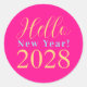 Pegatina Redonda Fiesta de Nochevieja Rosa Fucsia
