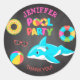 PEGATINA REDONDA FIESTA DE PISCINA INFLABLE NEON ORCA
