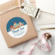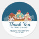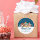 Fiesta de cumpleaños gracias pegatinas personalizados con sus propios detalles. Diseñado con una hilera de deliciosos quequitos con batidos y cerezas y deliciosas heladas. Ilustrado en un estilo retro clásico. Los colores son retro verde, rojo, azul y crema.