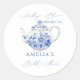 Pegatina Redonda Fiesta de té azul de despedida de soltera Toile