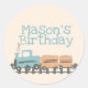 Pegatina Redonda Fiesta del primer cumpleaños de los niños retro