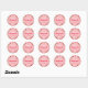 Divertidos pegatinas de la fiesta de cumpleaños "Berry first". Presenta un elegante patrón de fresa, rojo sobre fondo rosado con fuente contrastante, con un toque retro.