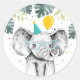 Pegatina Redonda Fiesta elefante Animales Safari Boy Pastel de cump