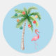 Pegatina Redonda Fiesta Flamingo del Árbol de Palma Tropical