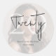 Agrega un toque elegante y moderno a la celebración de tu cumpleaños número 20 con esta elegante pegatina personalizada. El diseño presenta un fondo de foto suave, un "20" transparente y negrita, y una hermosa letra manuscrita que dice "Veinte", creando una estética chic y minimalista. Perfecta para sellar sobres, favores de fiesta, bolsas de regalos o decorar accesorios de cumpleaños. Personaliza el nombre y la fecha para crear una pegatina única y memorable que eleva cualquier tema de cumpleaños y agrega un acabado personal y sofisticado a tu evento.