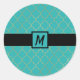 Pegatina Redonda Fiesta monogramada de cuatro hojas en verde y dora