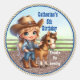 Pegatina Redonda Fiesta Occidental Niñita Vaquera Con Personalizado