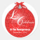 Salven la cita Navidades fiesta pegatina con un adorno de Navidad cubierto de encaje rojo con letras de fiesta blanco personalizable. ¡Celebremos! El elegante estilo de encaje rojo de las estrellas y las flores interrelacionadas recuerda al antiguo arte de hacer encajes. También puede disfrutar de muchos de los otros productos fiestas Navidades disponibles en mi tienda con este adorable y vintage diseño de adorno de navidad de encaje. Anura Design Studio Todos los derechos reservados