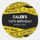 Pegatina Redonda Fiesta policial con amarillo No cruzar las cintas