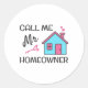 Pegatina Redonda Fiesta que calienta el hogar Llámame Sr. Homeowner