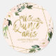 Fiesta Quinceanera Relieve metalizado dorado Rubor Floral rosa Pegatina redondo clásico
