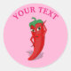 Un personaje de dibujos animados de pimiento rojo y picante. Diseño original con texto y fondo rosados.
