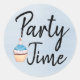 Pegatina Redonda Fiesta Time Blue Watercolor Cupcake Cumpleaños