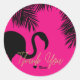 Pegatina Redonda Fiesta Tropical de Flamenco y Palma Rosa y Negro