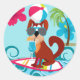Pegatina Redonda Fiesta veraniego de surf de perro de Guay