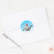Clásico Pegatina Redondo para un fiesta de piscina de cumpleaños con un bonito ilustracion de una pequeña ballena. La ballena lleva puesto un gorra fiesta de rayas rojas y blancas y ha comenzado la fiesta de cumpleaños en la piscina.