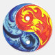 El diseño de fuego y hielo en forma de yin-yang representa la dualidad. Dibujado a mano con lápices de colores, estos colores calientes para el fuego y el azul fresco para la imagen del hielo se ven muy bien en cualquier objeto.