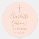 Con una cruz de oro y una tipografía de escritura de firma elegante en un fondo rosa rubor. Personalice con su bautismo especial o detalles de bautizo en este elegante pegatina. Diseñado por Thisisnotme©