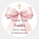 Pegatina Redonda First Communion pink bow girl cross thank you
