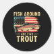 Pegatina Redonda Fish Around And Find Trout Funny Fishing Fishermen