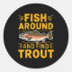 Pegatina Redonda Fish Around And Find Trout Funny Fishing Fishermen