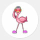 Pegatina Redonda Flamingo como pensionista con palo y Gorra
