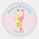Flamingo rosa con una tabla de surf amarilla en un Pegatina redondo clásico de fondo rosado. Diseñado por Jacqueline. Personalizado por usted. Todos los aspectos del diseño se pueden editar para adaptarlos. Si necesitas ayuda con esto, simplemente envíame un mensaje.