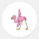 Pegatina Redonda Flamingo en ejercicio de Stretching de Yoga