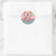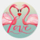 Pegatina Redonda Flamingo Love Wedding Favor | azul menta