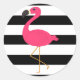 Pegatina Redonda Flamingo rosa de franja negra y blanca