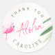 Pegatina Redonda Flamingo rosa tropical Aloha cumpleaños gracias