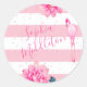 Pegatina Redonda Flamingo Tinta blanca rosa Moda floral Plata