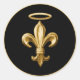 La flor de lis original de ARTegrity con un halo sentado sobre una fiambrera de oro que fue diseñada hace más de 4 años para todos mis compañeros "santos y pecadores" de N'Awlins. "Fleur de Halo" encanto de buena suerte en camisetas, gorras, pegatinas y regalos de sake.