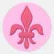 Pegatina Redonda Fleur de Lis en rosa fucsia con rosa claro