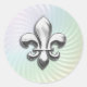 Pegatina Redonda Fleur de Lis sobre fondo plateado