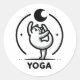 Dibujo en blanco y negro de un gato haciendo yoga, pose dinámica. Ideal para los aficionados al fitness y los amantes del gato, para promocionar la salud y la agilidad.